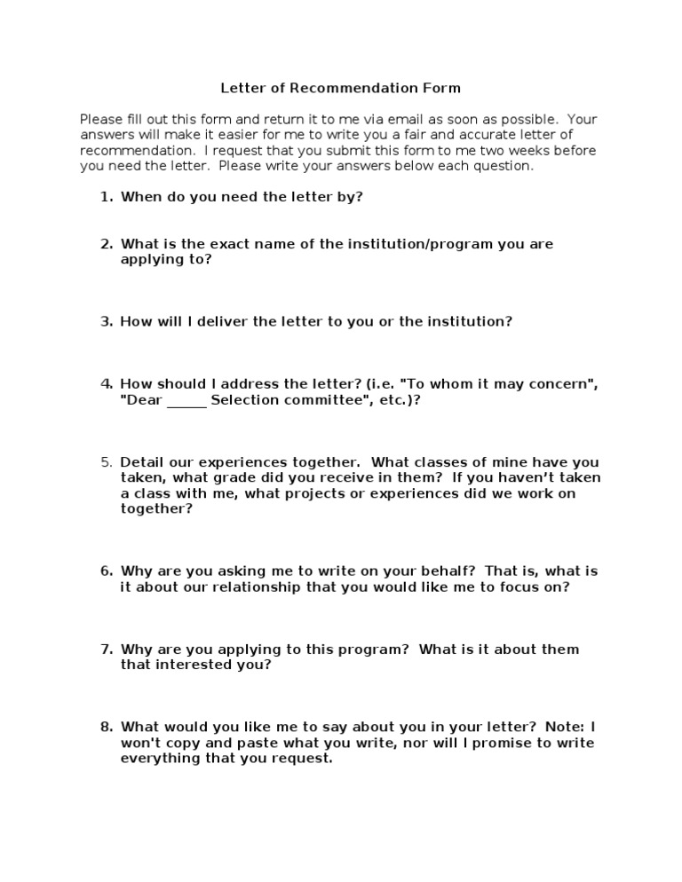 When requesting a letter of recommendation, there are a few steps you can take to make the process efficient and professional related: Recommendation letter template, with examples, and writing tips to use to write and format a letter of recommendation for employment or educational the first paragraph of a recommendation letter explains your connection to the person you are recommending, including how you know them, and. Your manager thinks that you have been transformed into your new role this week, you do not want to. Need a letter of recommendation from a teacher, professor, or counselor? Getting a generic letter of recommendation could ultimately hurt your chances of getting the job.